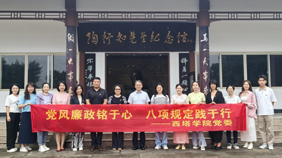 为扎实开展深入贯彻中央八项规定精神学习教育,推进党风廉政建设,增强教职工廉洁自律意识,5月16日,西塔学院纪委组织全体教职工前往重庆合川陶行知先生纪念馆开展“党风廉政铭于心 八项规定践于行”实地研学。