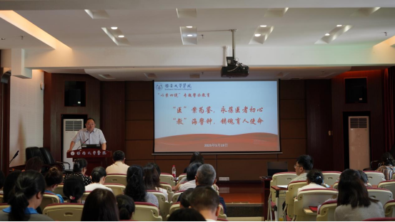 为扎实开展深入贯彻中央八项规定精神学习教育,深入推进医德医风、师德师风建设,5月19日下午,医院召开“‘医’案为鉴,永葆医者初心 ‘教’海警钟,铸魂育人使命”“以案四说”专题警示教育会。会议由医院党委书记吴宗辉主持。