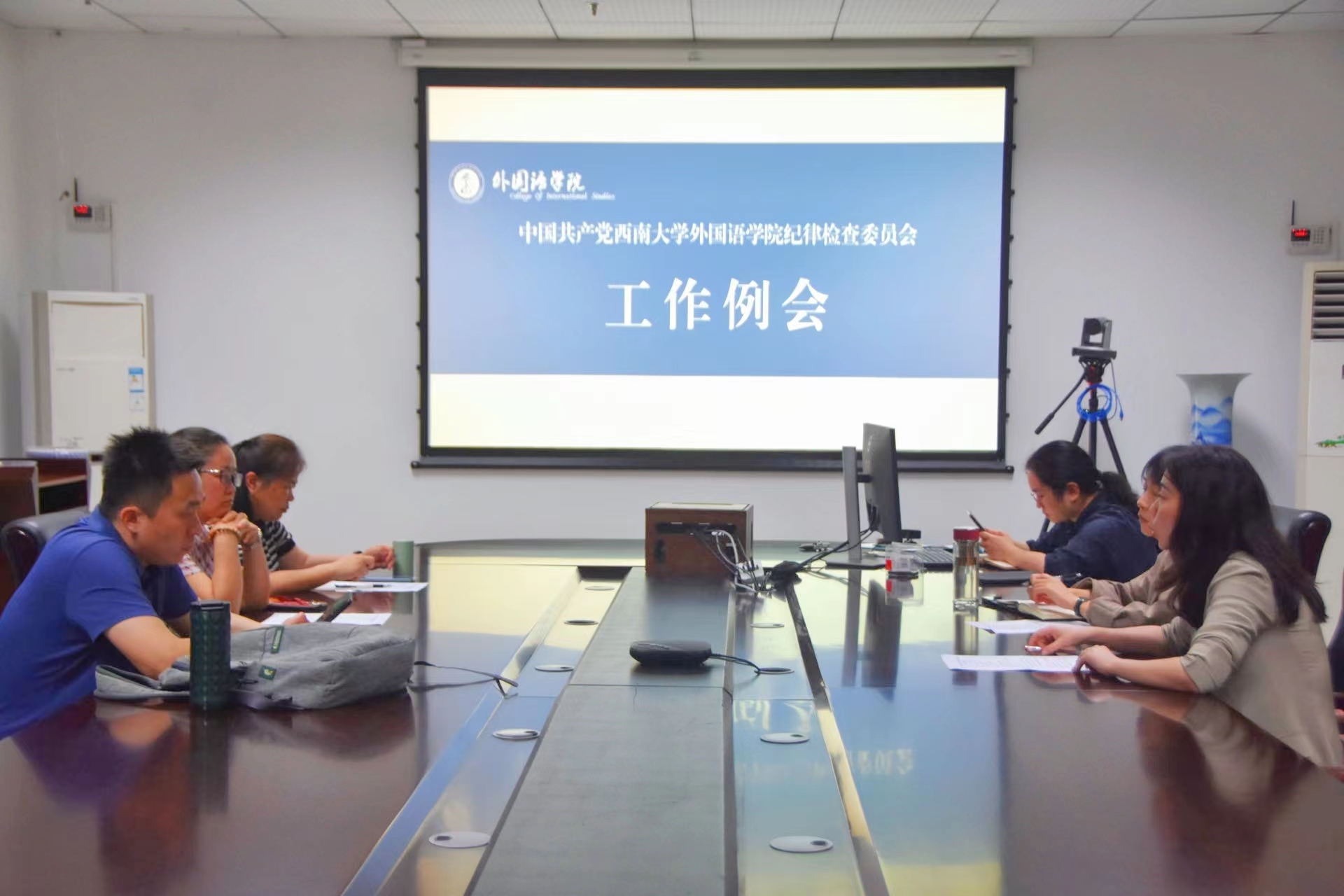 近日,外国语学院纪委召开2023年春季学期工作例会,学院全体纪委委员参会,会议由学院党委副书记、纪委书记李晓畅主持。